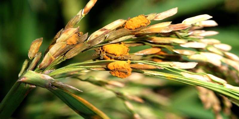 इस बीमारी में फंगस दानों पर हमला करती है और इन्हें हरे या पीले मखमली धूल में बदल देती है। शुरू में, बड़े जीवाणु संतरी रंग के होते हैं, जो बाद में पीले-हरे या हरे-काले रंग के हो जाते हैं। यह बीमारी बालियों के कुछ दानों पर ही हमला करती है। फूल बनने के समय नमी, वर्षा और बादलवाई के हालातों में इस बीमारी का हमला बढ़ने की संभावना ज्यादा होती है।